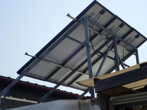 三枚の( ̄▽ ̄)ソーラーパネルが上がっています