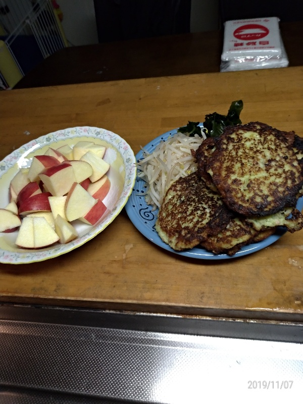 貧乏メニューで夕食!! 2019年11月7日こんばんは! 夕食?すみましたか?? おばやんは終了しました! 今日は、冷蔵庫に?? 挽き肉。。。少し! キャベツ。。いっぱい!だけ で 丸めて?焼いて見た! サケノチーズヤキ!! リンゴ!! で 頂きました! 超うまい??とはいえませんが?? 食べられた! 良かったよー!? まだ?? 食べてない人は 早く食べてください その他もろもろPosted by ねこちん