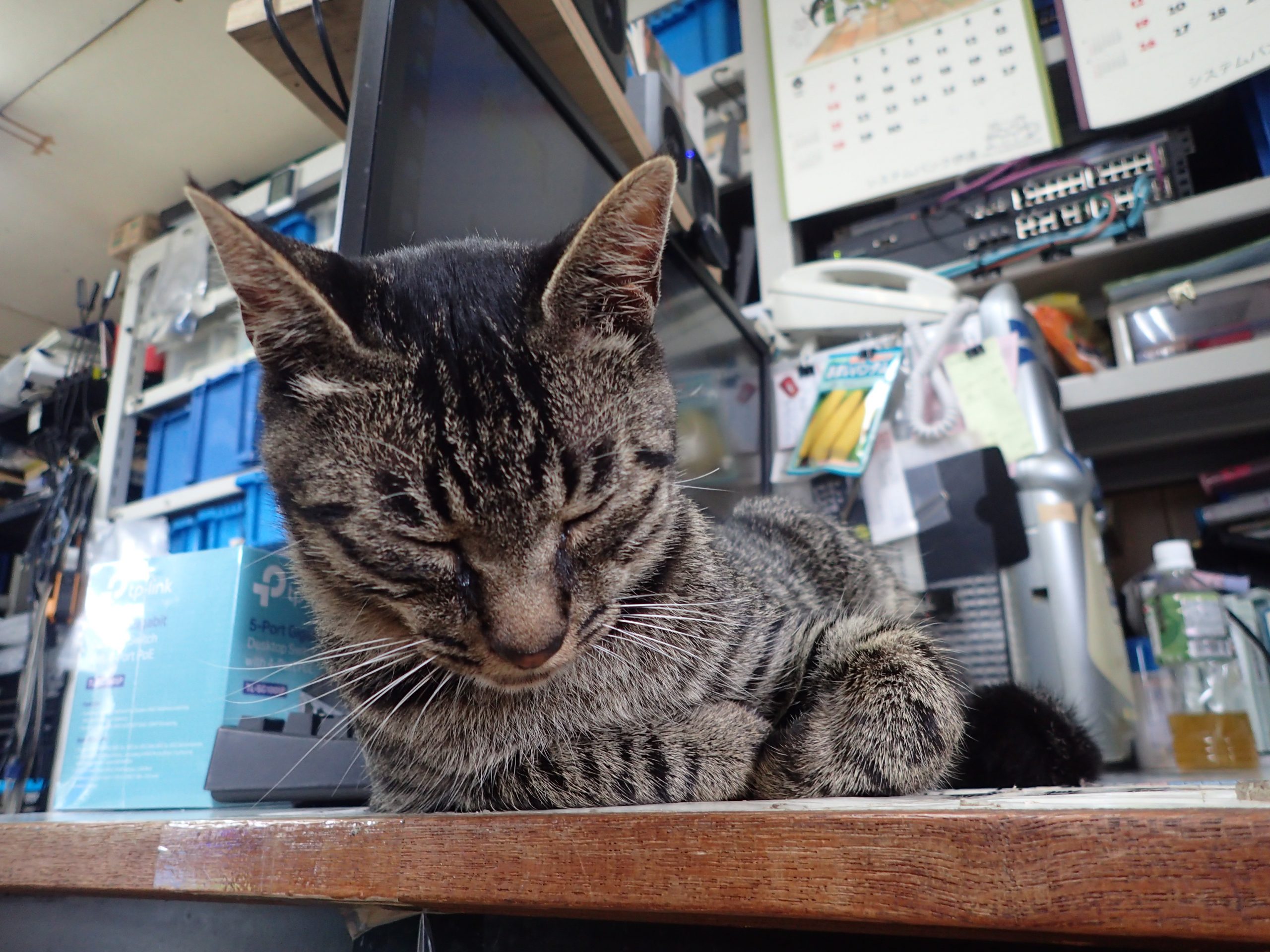 おばやんの・( ^ω^)・・・机の上で・・・・・(=^・・^=)❓