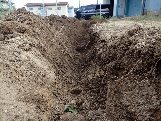 駐車場を 掘るのは たいへん ヘトヘト