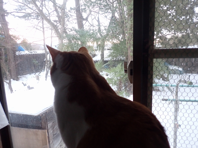 ストーブのある お部屋から・・・・賢いねえ (=^・・^=)