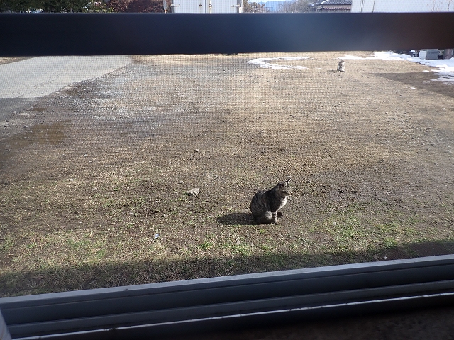 野良猫部隊(=^・・^=)の グレコちゃん 窓の下で ひなたぼっこ中 (=^・・^=)