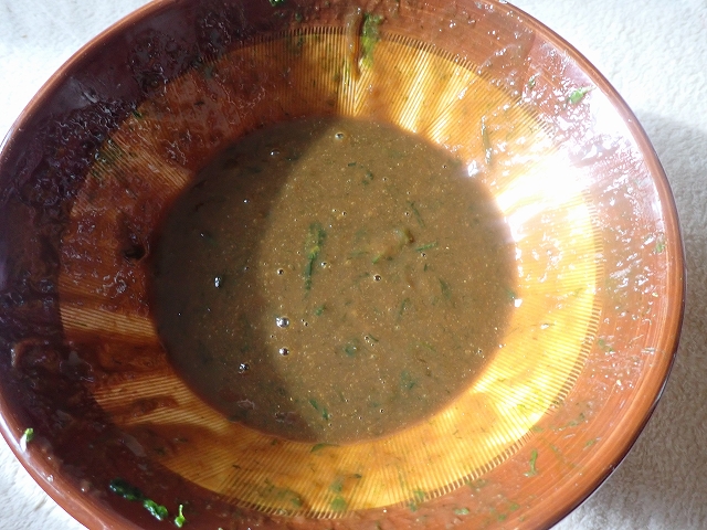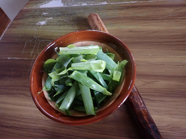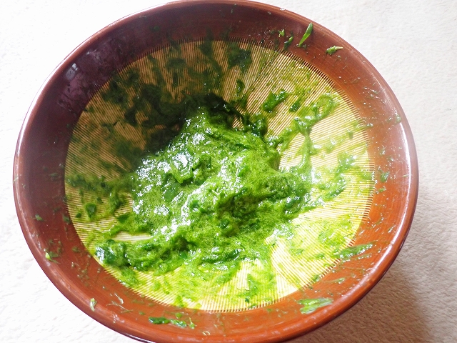 ネギの青い部分を・・・・すり鉢・・・・に